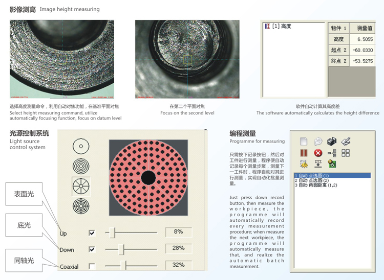 - 功能:包括三次元、二次元、工具顯微鏡、投影儀的功能。